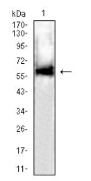 WB Predicted band size : 65KDa
